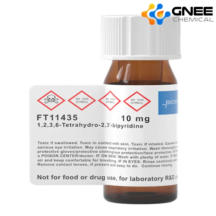 (Rs) -Anatabine, també coneguda com a 1,2,3, 6- tetrahydro -2, 3'-bipyridina, d, l-anatabine, etc. Normalment apareix com un líquid groc a clar. És relativament estable en condicions normals d’emmagatzematge i no és fàcil de descomposar, però en determinades condicions, com ara oxidants forts, àcids forts o bases fortes, es poden produir reaccions químiques. En el camp farmacèutic, D, L-Anatabine es pot utilitzar com a intermedi en la síntesi de fàrmacs i utilitzar-la per sintetitzar alguns compostos biològicament actius. En investigacions científiques, es pot utilitzar com a estàndard o reactiu per a la investigació i l'exploració relacionades amb el tabac i l'exploració de la metodologia de síntesi orgànica.